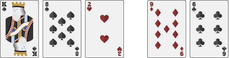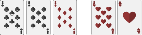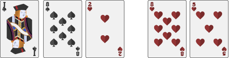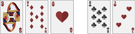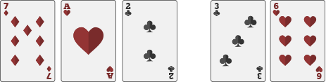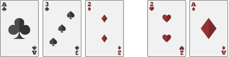 - ไพ่ Blue Bull: [Ace ♥] [3 ♦] [2♦] , [2 ♣] [Ace ♥]
