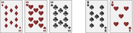 | 10 | Bull 5 | ![]() | ไพ่ 3 ใบรวมแล้วได้เท่ากับคะแนนเต็ม 10 ส่วนไพ่ 2 ใบที่เหลือ คะแนนรวมเป็น 5 หรือ 15 |