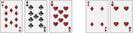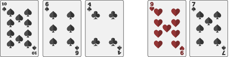 | 11 | Bull 4 | ![]() | ไพ่ 3 ใบรวมแล้วได้เท่ากับคะแนนเต็ม 10 ส่วนไพ่ 2 ใบที่เหลือ คะแนนรวมเป็น 4 หรือ 14 |