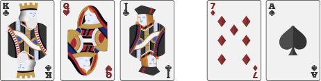- ไพ่ Blue Bull: [Ace ♥] [2 ♦] [7♦] , [2 ♣] [7 ♥]