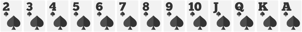 เกมส์ไพ่ป็อกเด้งจะประกอบไปด้วยไพ่ 52 ใบ มี 13 ลำดับดังต่อไปนี้