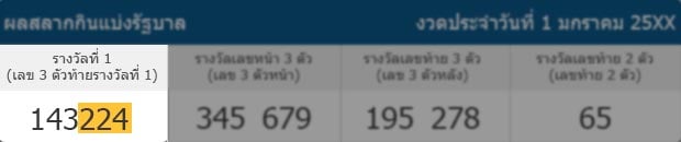 จำนวนเลข 6 หลักของผลการออกรางวัลที่ 1 จะใช้เลข 3 ตัวท้ายของรางวัลที่ 1 เป็นผลสำหรับการวางเดิมพัน