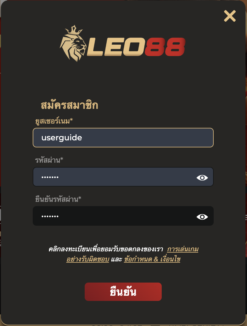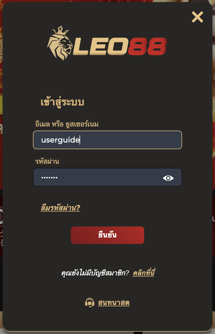 ขั้นตอนที่ 3 : เข้าสู่ระบบเว็บไซต์ LEO88