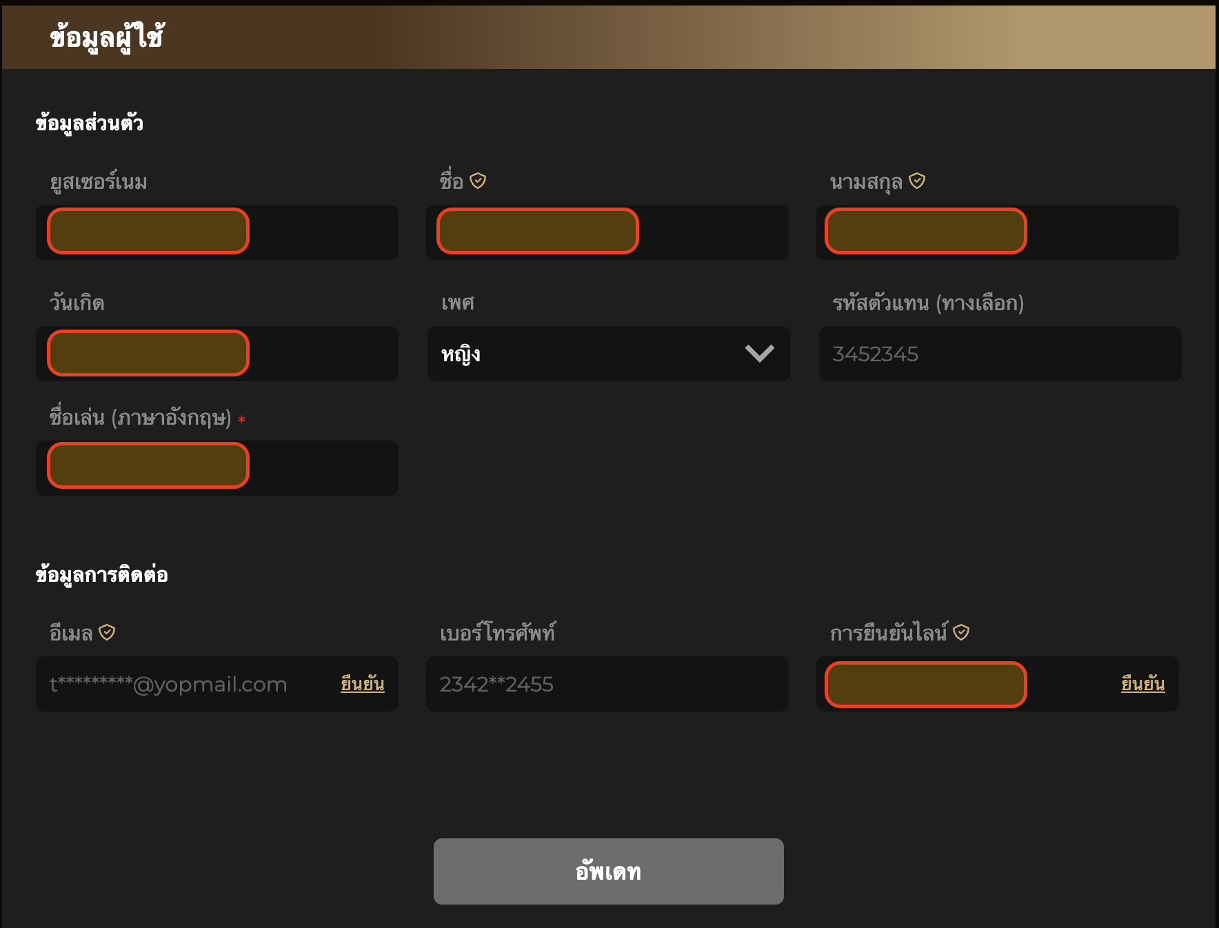 ขั้นตอนที่ 5 : กรอกข้อมูลของคุณให้ครบสมบูรณ์เพื่อยืนยันบัญชี