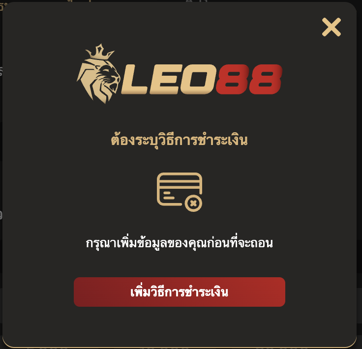 - ระบุชื่อของบัญชีธนาคาร (LEO88 จะตรวจสอบจากชื่อและนามสกุลที่ลงทะเบียนในระบบว่าตรงกับชื่อบัญชีธนาคารหรือไม่)